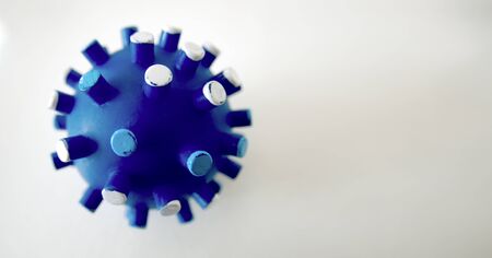 Close-up of a virus particle with spikes on a clean background, room for copy.