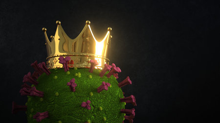 Wide aspect ratio of a stylized virus particle, symbolizing the impact of pandemics