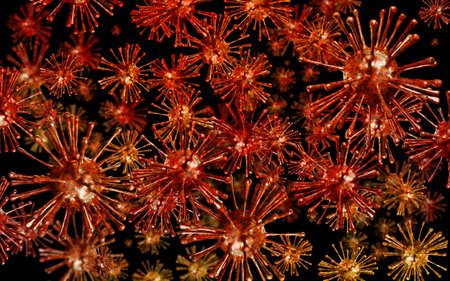 3d illustration abstract viral infection causing chronic disease. coronavirus, influenza virus H1N1, Flu, cell infect organism, aids. Virus abstract background.
