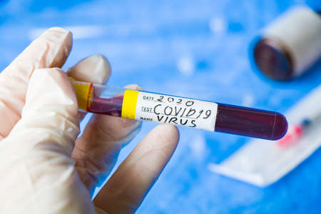 COVID-19 blood test in test-tube, sample of blood testing for diagnosis new Corona virus infection