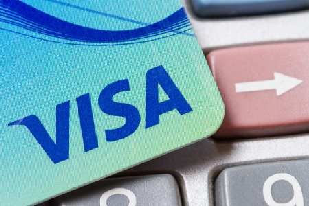 LONDON, UK - JUNE 13TH 2016: A close-up shot of the Visa logo on a debit card, taken in London on 13th June 2016.
