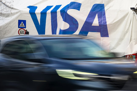 Visa Inc. logo being made with many numbers. Digital business conceptual editorial 3D rendering