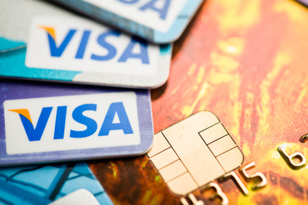 Bangkok, Thailand - 24 feb 2016 : close up of credit cards ,VISA card, product shot