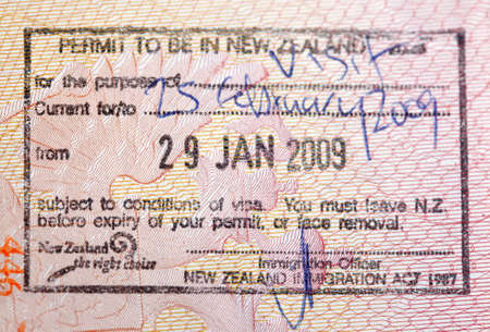 Immigration stamp in a passport