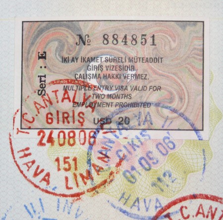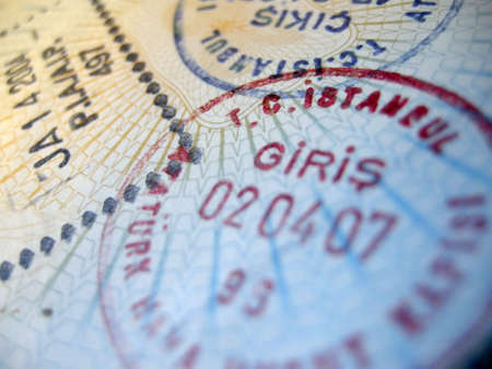 Close-up turkish 2006 year visa and customs stamps