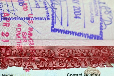 United state visa stamp macro in passport page