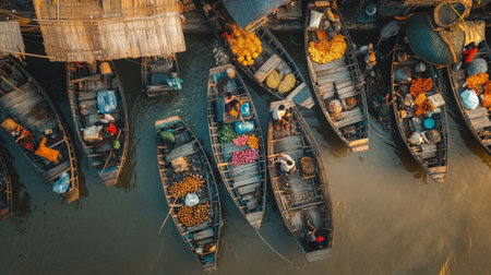 Aerial view of traditional floating market in the Mekong Delta, Vietnam