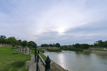 View of the Pasak River behind the Rama VI Dam in the evening.