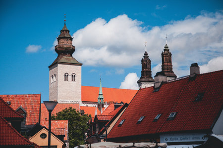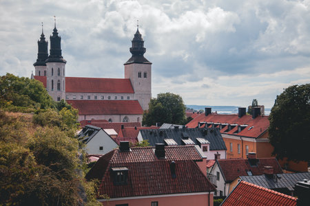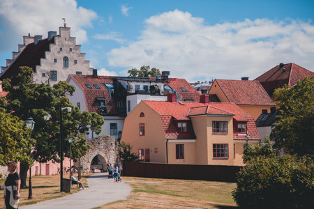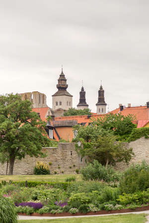 Visby - September 23, 2018: Panoramic view of the old town of Visby in Gotland, Sweden