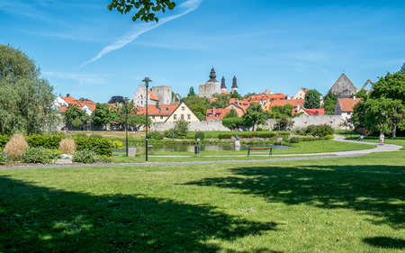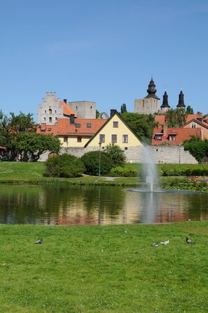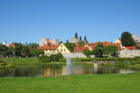 Visby - September 24, 2018: Lake in the old town of Visby in Gotland, Sweden
