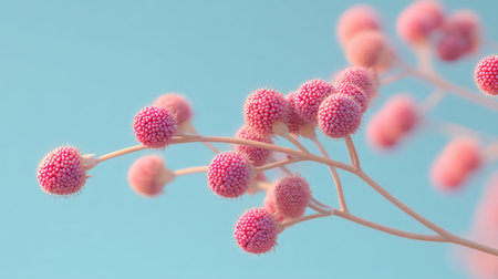 A stunning close-up image of delicate pink flora against a soft blue background. This artistic capture highlights the intricate details and vibrant colors of nature, ideal for creative projects.