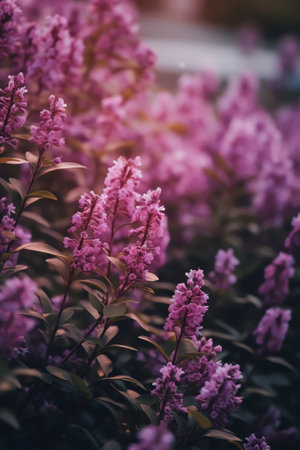 Generative AI : Forest gentle primroses close up on a very beautiful lilac blurred background Spring awakening Dreamy soft romantic artistic image Floral wallpaper