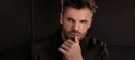 Elegant man close up portrait against dark background