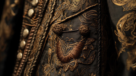 This image captures the detailed artistry of elegant embroidery on a vintage garment, highlighting the rich textures and intricate designs that showcase exquisite craftsmanship.