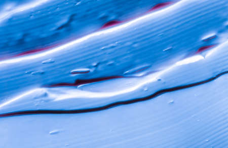 Fluid splash. Paint flow. Defocused cold blue color glowing acrylic ink water emulsion spill wave creative abstract art background.