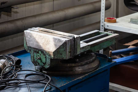 Old metal vise in the metalwork shop