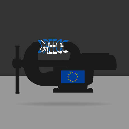 Vector illustration. Silhouette vice squeezing Greece.