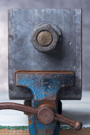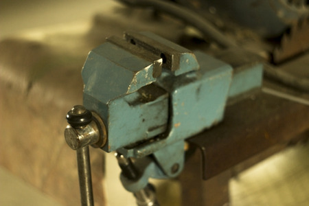 Old iron vice in a workshop, selected focus, narrow depth of field