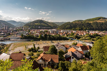 Panorama of Bijelo Polje on river Lim, towm citi municipality in Northern Montenegro
