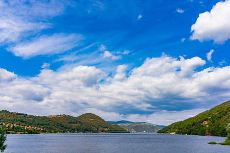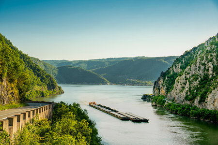 Danube river near the Serbian city of Donji Milanovac in the Iron Gates, also known as Djerdap, which are the Danube gorges, a natural symbol of the border between Serbia and Romania.
