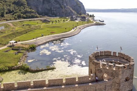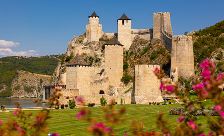 Summer view of Golubac Fortress above Danube River, Serbia
