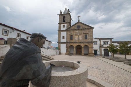 Viana do Casterlo, Portugal. August 15, 2017: Statue of Fray Bartolomeu dos martires, archbishop of Braga in the sixteenth century. Built in bronze and depicting him mounted on a mule for how much he traveled