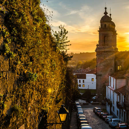 Urban landscape, view of Santiago de Compostela at sunset, Galicia, northern Spain