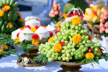 Various fruits and offerings were arranged for the worshiping ceremony of the gods. of hinduism
