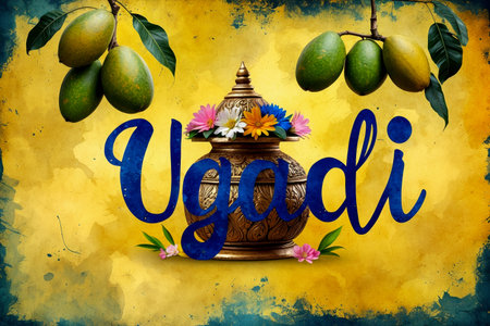 AI Generative Greeting card Ugadi Yugadi New Year traditional holiday on the first day of the month of Chaitra
