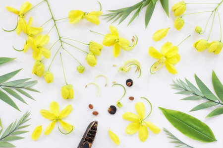 Golden shower or cassia fistula flower on white background.