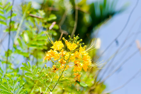 Caesalpinia pulcherrima , Barbados pride or Dwarf Poinciana or Peacock flower or FABACEAE or LEGUMINOSAE CAESALPINIOIDEAE or yellow flowers