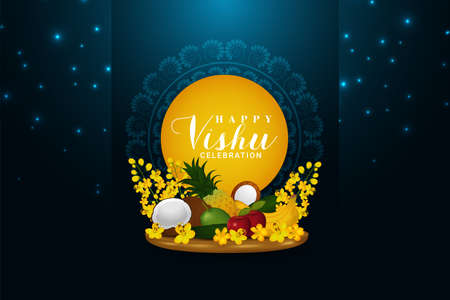illustration of Happy Vishu new year Hindu festival celebrated in the Indian state of Kerala