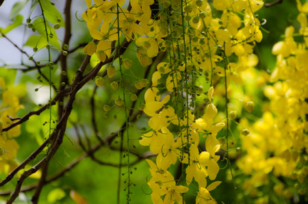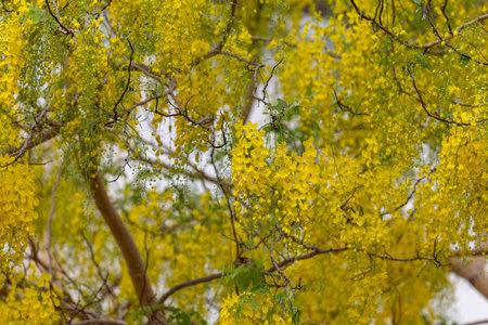 Golden Rain Tree Yellow Flowers of the species Cassia fistula with selective focus