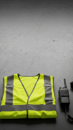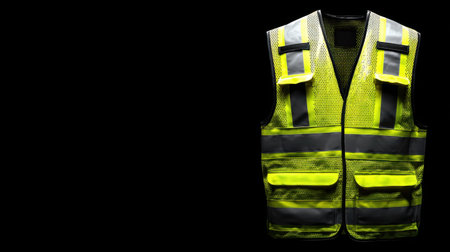 Dark minimalist background framing a high-vis safety vest under soft top light