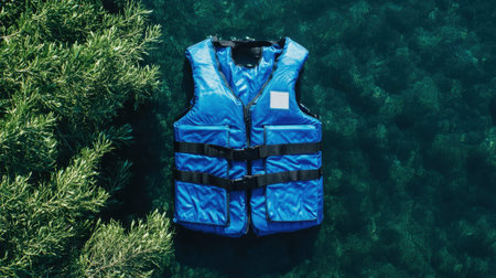 This bright blue life jacket features adjustable straps and multiple storage pockets, perfect for ensuring safety during water sports and outdoor adventures.
