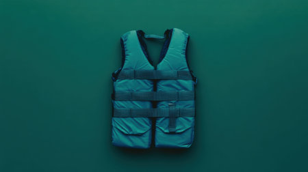 This image features a blue protective vest positioned on a solid green background, ideal for showcasing safety gear in outdoor activities and adventures.