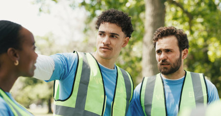 Clipboard, volunteering and person in park for cleaning, community service and pollution or sustainability checklist. Gardening, inspection and people hands for ngo or nonprofit, outdoor and nature