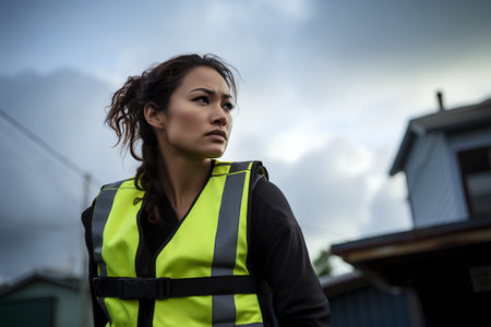 This bright safety vest, designed with reflective strips, offers exceptional visibility and protection for use in various outdoor settings, including construction and emergencies.