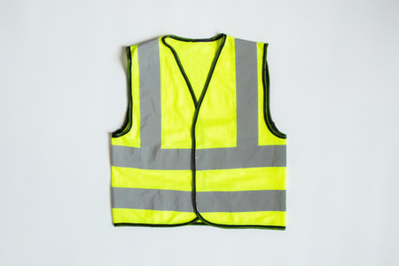 A bright yellow safety vest designed for construction and outdoor work. Features reflective stripes for improved visibility, ensuring safety in various environments.