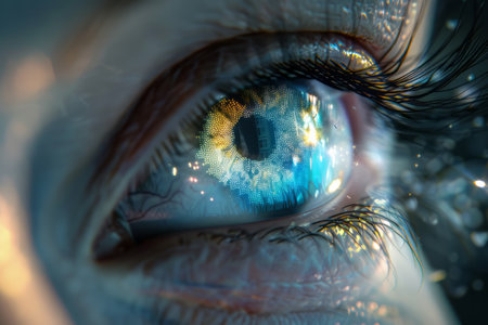 Close-up view of a human eye highlighting intricate colors and reflective details