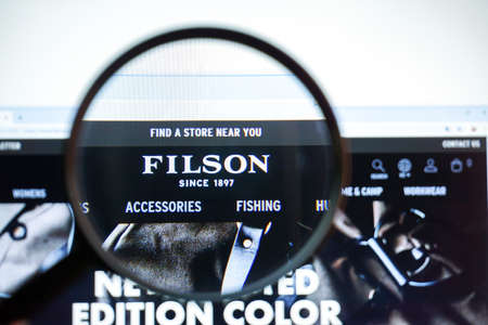 Miami, Florida, USA - 01 July 2020: Official website, homepage of Filson logo visible on display screen