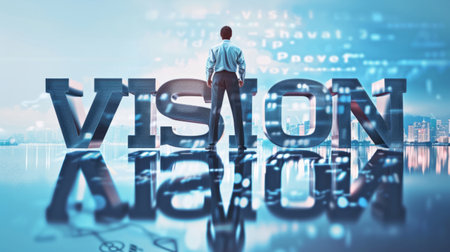 Illustration of a businessman, standing behind the word VISION generative ai