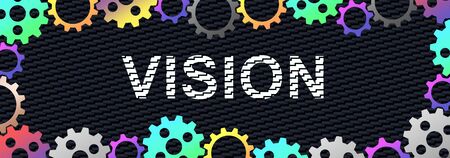 Word vision surrounded with multicolored cogwheels
