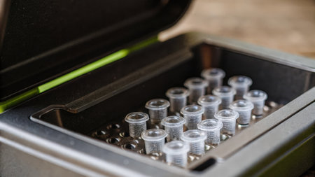 A closeup of an open diagnostic kit displaying organized compartments filled with testing reagents and sampling tools designed for easy access and efficiency highlighting the functionalit