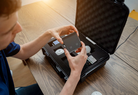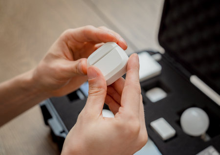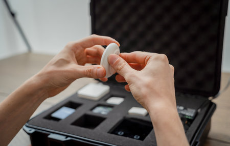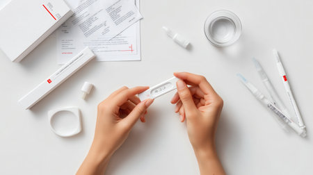 An overhead shot of hands holding a home medical test kit, surrounded by instructions and supplies. This image signifies convenient self-testing, rapid diagnostics, personal health management, and accessible healthcare solutions. Ideal for topics related to home health, disease screening, fertility, and wellness.