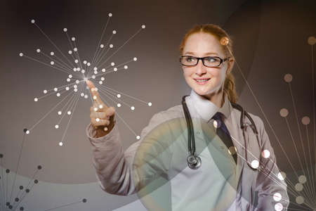 Woman doctor pressing virtual button