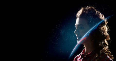 Isolated combination of the silhouette of a man face and the stars of the Milky Way. Concept of the connection between man and the universe, new discoveries and space exploration