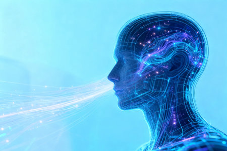 A profile of a head displays intricate neural connections and luminous synapses, symbolizing the intersection of humanity and artificial intelligence.
