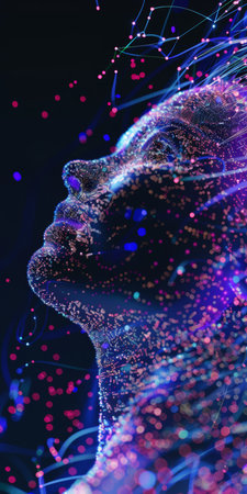 digital data deep learning ai robot bionic automatic face, technology network, cyberpunk futuristic concept, plexus cell brain, humanoid science