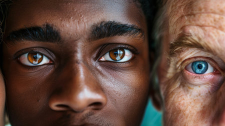 Two men of different ages and races look ahead with hope, reflecting unity and humanity